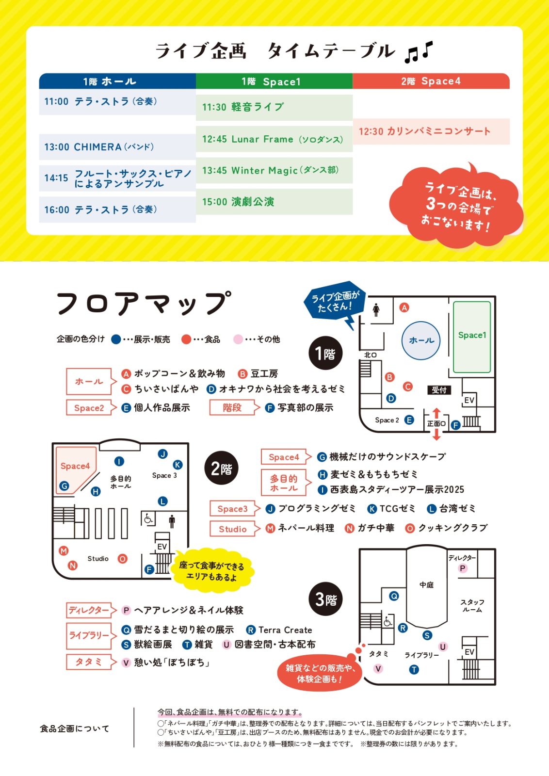 内容:ライブ、作品展示、成果発表展示、飲食、物品販売、体験など